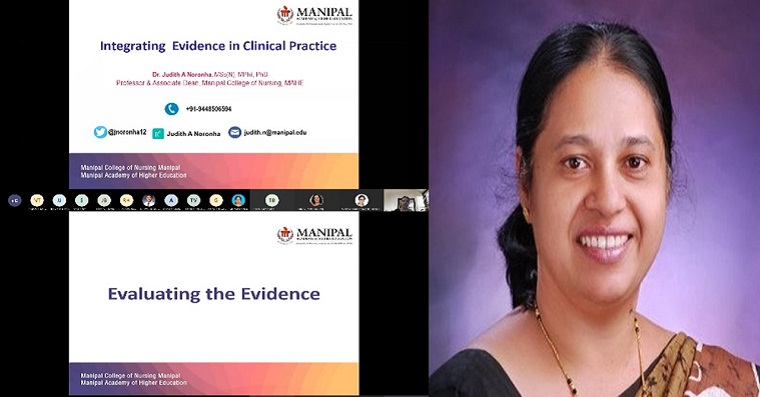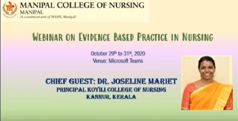 A three-day webinar on evidence-based practice in nursing was organized by department of child health nursing, Manipal College of Nursing (MCON), MAHE, Manipal from October 29th to 31st 2020. The objective of the webinar was to create awareness about evidence-based practice in nursing. The webinar was attended by 26 participants from different institutions in India and abroad.