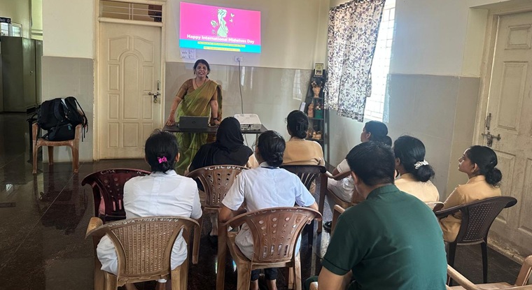 To celebrate the International Day of the Midwife 2025, the faculty members and final-year postgraduate students from the Department of Obstetrics & Gynecological Nursing (OBG(N) ) at Manipal College of Nursing (MCON), Manipal Academy of Higher education ( MAHE), Manipal organized a series of programs to commemorate the ‘International Day of Midwife - 2025’ based on the global theme “Midwives: Critical in Every Crisis.” The celebrations began on May 3, 2025 with an awareness session for VI Semester B.Sc. Nursing students held at MCON, Manipal. Ms Crensha Shajin – 2nd year Postgraduate student spoke on “Managing prolonged labour – When to act quickly,” and Mr Pema Wangchuk – II year Postgraduate student shared insights on “The role of a student nurse during an obstetric emergency” These awareness sessions helped the undergraduate students understand the importance of decision-making and the critical role nurses/midwives play during emergency situations arising during childbirth. A total of 48 students actively participated and benefited from the session.