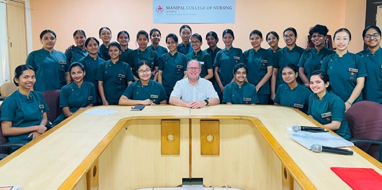 Prof. VanSlyke, a Teaching Professor at the University of New Brunswick Faculty of Nursing, visited Manipal College of Nursing, Manipal, from April 15th to 27th, 2024, as part of the Shastri Faculty Collaboration and Internationalization Project and engaged in various activities aimed at enhancing collaboration and understanding between the institutions. He commenced the meetings with the Dean, Associate Dean, Head of the Departments and Professors of MCON, providing an orientation on the purpose of his visit. Prof. Stephen interacted with the students in their clinical area to grasp their clinical learning experiences and conducted orientation sessions for MAHE-UNB dual degree students. Exploratory visits were made to the culinary museum, Yoga, Ayurveda, and Sidha departments, as well as to the village and Primary Health Centre to understand community dynamics and student initiatives. Sessions on Scholarly writing and NCLEX preparation were conducted. Additionally, he visited the Mental Health Unit and Centre for Online Learning, while also contributing through a guest lecture on reflection for First Year MSc Nursing students, emphasizing its significance in learning enhancement. Prof Stephen’s visit fostered deeper collaboration and knowledge exchange between the institutions.