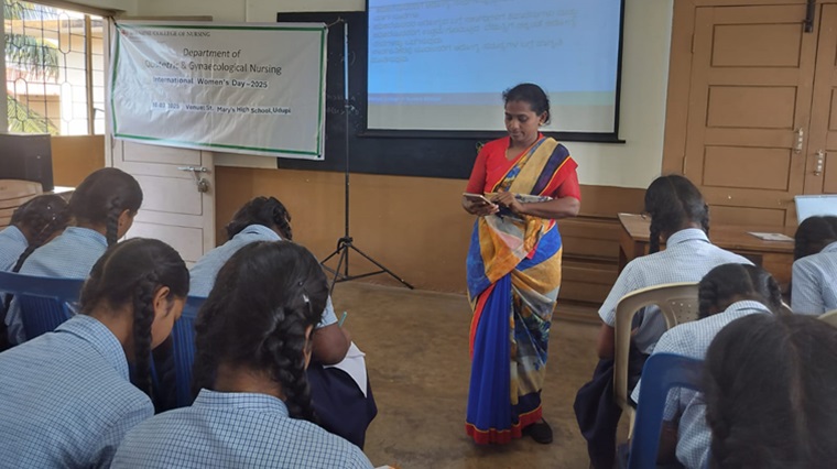 On March 10, 2025, from 2:30 to 4:00 pm, an outreach program was conducted at St. Mary’s High School, Udupi, the beneficiaries being the adolescent girls from high school. An awareness session on ‘Adolescent Health’ was taken by Dr. Maria Pais, Assistant Professor, MCON, MAHE, Manipal. Following this session, Mrs. Ranjani P, Assistant Professor, MCON, MAHE, Manipal, conducted a program on the benefits of Yoga practice. A total of 35 participants attended the program and found it highly beneficial. The initiative was well received with good feedback from the participants, and Mrs. Joyce D’Souza, headmistress expressed her gratitude to the organizers and the resource persons from Manipal College of Nursing, MAHE, for organizing such a valuable session for their students.