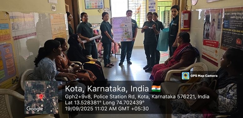 The students of the seventh-semester BSc Nursing and the Department of Community Health Nursing, in collaboration with the unit of National Service Scheme (NSS), MCON, organized a series of health awareness programmes on Non-Communicable Diseases on 19th September 2025 at CHC Kota.
