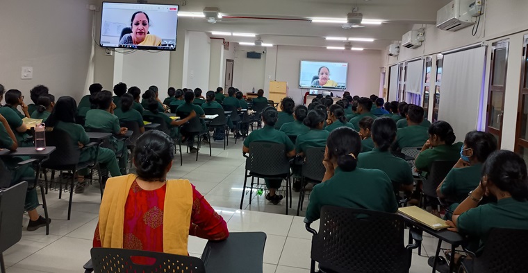 The Innovations, IPR & Consultancy Vertical of Pillar II: Exemplary Research & Innovation, Manipal College of Nursing, MAHE, Manipal organized the guest lecture on “Industry Expectations from graduate nurses” on 31 December 2024 for the final year B.Sc Nursing students of MCON. The resource person Captain Ajitha Nair, CEO of KIMSHEALTH Hospital, Kottayam, Kerala, and National President of the Association of Nurse Executives, India (ANEI), deliberated the session and highlighted the various aspects of industry expectations from graduate nurses which includes, the right attitude of nurse and attitude of learning, advancement in professional knowledge, taking newer initiatives, volunteering for themselves for various work in emergencies, demonstration of professionalism in everyday life, patient safety & accuracy of work, honesty, compassion, accurate practice and right insights, professional competency, Good IPR & Communication skills, and discipline, etc. The session also gave insights into the challenges that would be faced by the newly graduate nurses to the students. A total of 90 students attended the guest lecture. This program has contributed towards achieving SDG -4 Quality education. The overall program was convened by Dr. Jeyalakshmi K, & Dr. Savitha Prabhu, Assistant Professors – Senior scale, Manipal College of Nursing, MAHE, Manipal.