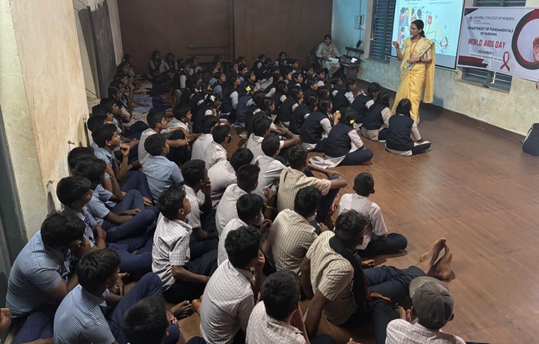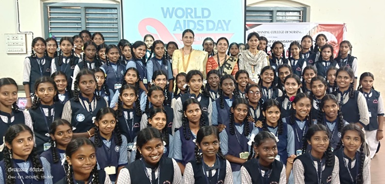 The Department of Fundamentals of Nursing, Manipal College of Nursing (MCON), MAHE, observed World AIDS Day by organizing an HIV/AIDS awareness program on December 1, 2025, at 2:30 p.m. at SVT High School, Karkala.