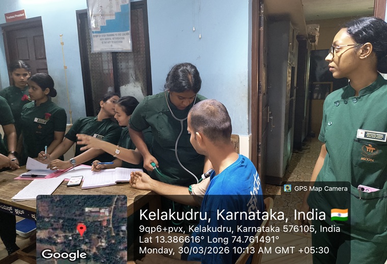 The health camp was organized on March 30, 2026, from 9:00 AM to 12:30 PM, for mentally challenged inmates at Spandana Special School, Uppoor. A total of 50 individuals received screenings for general health (blood pressure, blood sugar, BMI) and dental health, including oral prophylaxis by the Department of Public Dentistry, and thirty-two clients were referred to the dental OPD at MCODS, MAHE. Faculty and postgraduate students of clinical psychology conducted psychological evaluations and identified clients who would benefit from speech therapy and behavioral interventions. This camp was coordinated by Dr. Ansuya, Associate Professor, Department of Community Health Nursing, MCON. Faculty members of the department, including Dr Vinish V, Mr Amol Powar, Ms Clara Dsouza, and Ms Surekha, actively participated in various tasks during the camp.