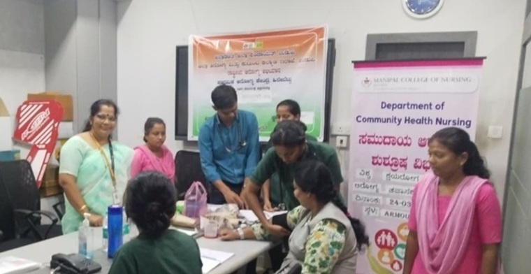 On 24th March 2026. health screening and awareness programme was organized on the occasion of World Tuberculosis Day for factory workers at Armour Kartons, Badagabettu, in collaboration with PHC, Hirebettu. The programme was conducted by the MCON 2nd Year M.Sc. Nursing students and faculty of the Department of Community Health Nursing under the guidance of Dr. Malathi G. Nayak. The programme was held from 8:30 AM to 1:00 PM on 24th March 2026 with the objective of promoting awareness regarding tuberculosis and providing basic health screening services to factory workers. Aligning with the global agenda, the initiative directly supports Sustainable Development Goal 3 (SDG 3): Good Health and Well-being, and SDG 17: Partnership for the Goals, recognizing that good health is a crucial component of sustainable development.