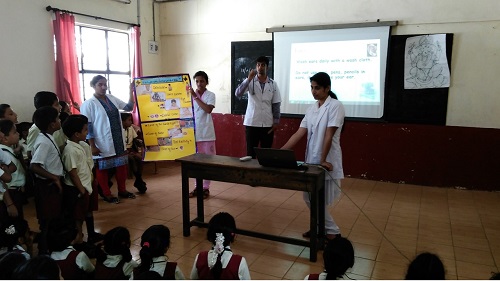To create awareness among the primary and secondary school children of Indrali English Medium School, Udupi, the students of I year PBBSc Nursing of Manipal College of Nursing Manipal, Manipal Academy of Higher Education, organized a health awareness programme in two groups on September 11, 2015 and February 23, 2016.