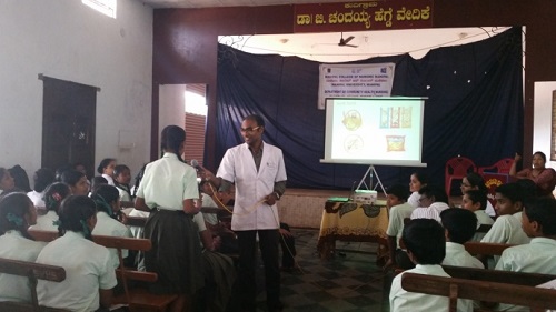 Mr. Krishnappa, Senior Health Inspector, PHC, Pernankila, given a talk on signs and symptoms of H1N1 and Tuberculosis. The master of ceremony was done by Mrs. Thripthi and programme was concluded with vote of thanks by Mrs. Jyothsna.