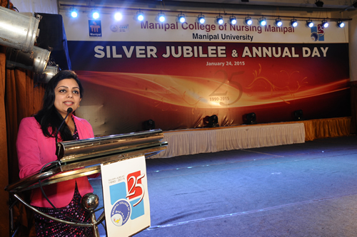 MCON celebrated its glorious existence of 25 years and Annual day on 24th January 2015 in KMC Greens, Manipal at 5.30 pm by offering floral tributes- to Late Dr. TMA Pai was done by the dignitaries.Prof. Vasudha Kamat, Vice Chancellor, SNDT women’s University, Mumbai was the chief guest. Dr. Judith Noronha, Associate Dean,Manipal College of Nursing welcomed the gathering and introduced the chief guest.