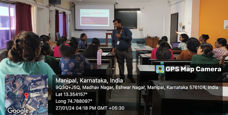 The Student Research Forum of Manipal College of Nursing, MAHE, Manipal, conducted the 3rd session of 2023-2024 on the topic ‘How to select a good journal for publication’ on January 27, 2024, from 4.00 p.m. to 5.00 p.m. The resource person for the session was Mr. Renjulal Yesodharan, Assistant Professor-Senior Scale, Department of Mental Health Nursing, Manipal College of Nursing, MAHE, Manipal. The session focused on attaining SDG 4: Quality Education. Mr. Renjulal elaborately explained the characteristics of a good journal and how to find the right journal, with many examples. The session was very inspiring and informative and was well-appreciated by the participants. A total of 74 participants, including undergraduate & postgraduate students, PhD scholars, and project staff of MCON, attended the session. E-certificates were given to all the participants.