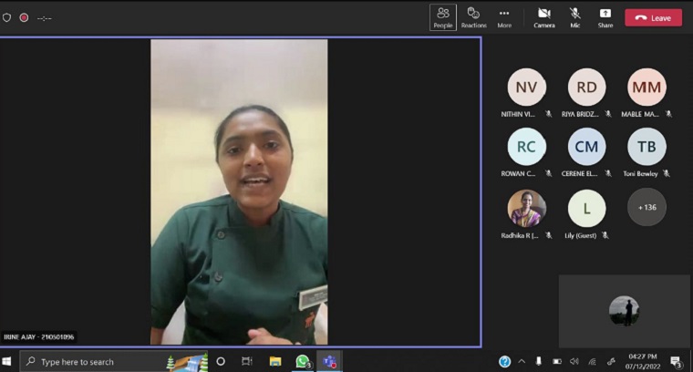 As part of the Student Collaboration activity, a session on “Overcoming Stress Experience” was organized by the department of Fundamentals of Nursing on 7th December 2022 from 03:30 pm to 05:30 pm through the MS teams virtual platform.