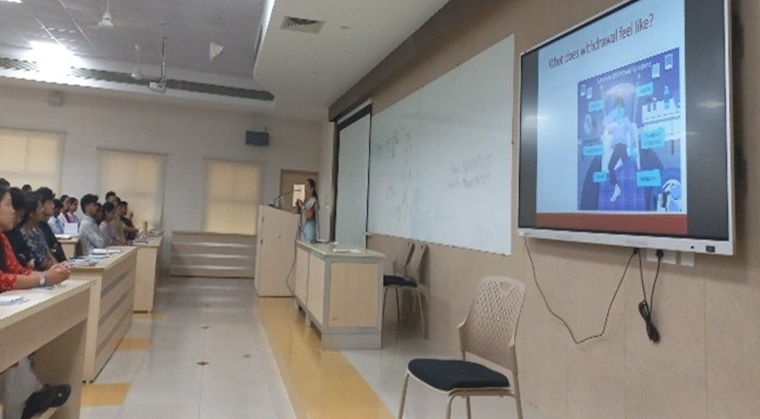 Following this, Dr. Savitha Prabhu from the Department of Psychiatric (Mental Health) Nursing led a crucial session on substance abuse awareness. Her presentation included psychoeducation on commonly misused substances—alcohol, tobacco, and cannabis—highlighting their associated risks such as addiction, impaired cognition, and mental health issues. She also shared practical strategies for prevention and early intervention, fostering awareness and responsible behaviour among students.