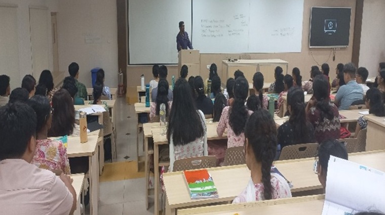 The day’s academic orientation concluded with Mrs. Prima J J D’Souza, the Examination Coordinator, providing an overview of the E-pad examination system. She explained the digital exam platform, including login procedures, system navigation, and exam guidelines, ensuring students understood how to access and use the system smoothly.