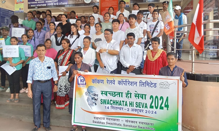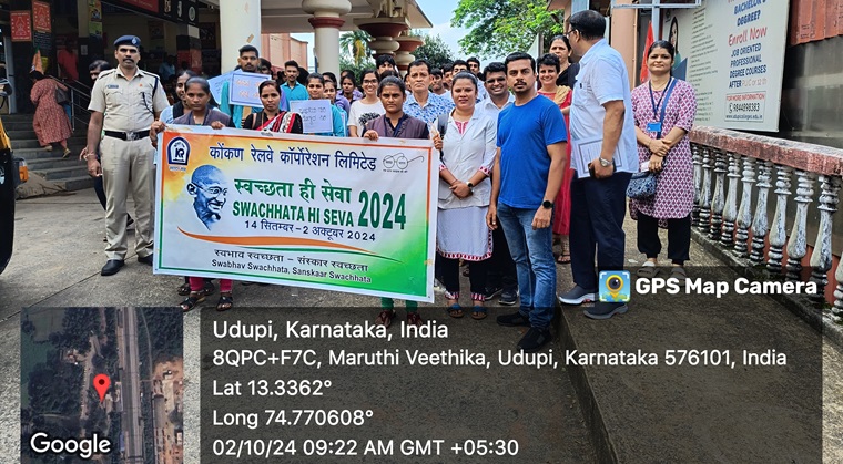 The Department of Community Health Nursing, National Service Scheme (NSS) & Volunteer Services Organization (VSO) Units of Manipal College of Nursing (MCON), in collaboration with the Health Unit of Konkan Railway Corporation Ltd, organised a Swachh Bharath Abhiyan awareness program on 2nd October 2024, as part of the Swachhatha Hi Seva 2024 initiative. The event took place at the railway station in Udupi. The program kicked off with an inaugural ceremony graced by the esteemed presence of Dr. Shenoy, the President of the Indian Medical Association (IMA) Udupi Chapter. The Deputy Chief Medical Officer, Dr. Steven George, led the volunteers to take the Swachh Bharat pledge. A rally featuring impactful slogans on sanitation was conducted, creating awareness among the public. The volunteers distributed pamphlets to residences and shops during their house visits, sensitizing the community on the significance of maintaining a clean environment. The initiative was well received by all participants and garnered appreciation for its efforts towards promoting cleanliness and hygiene in the community. This collaborative programme is aligned with Sustainable Development Goal 3 (Good Health and Well-being), 6 (clean water and sanitation), and 17 (partnership for the goals), as it serves to raise awareness about health and hygiene practices among the public, contributing to a healthier and cleaner environment for all.