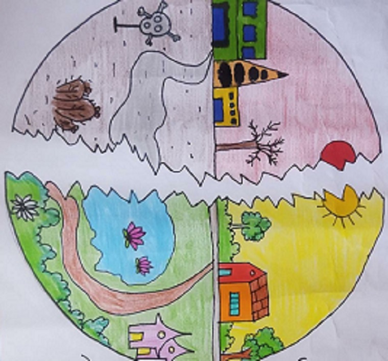 A Drawing competition on the theme “ Lifestyle for the environment” was organized for school children of class 3 -7th in Government Higher Primary School, Athrady and Government Aided Higher Primary School, Hirebettu. Total 62 students participated in the drawing competition. The best ones were awarded with 3 prizes in both the Schools.