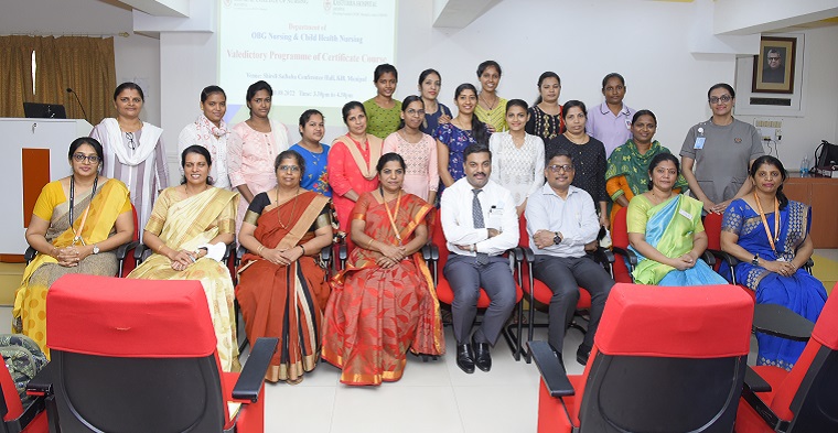 The valedictory program of the Certificate Course on Basic Obstetrical skills and Neonatal Nursing organized by the department of OBG Nursing and Child Health Nursing, Manipal College of Nursing (MCON), MAHE Manipal was held on 10th August 2022 in the Conference Hall of Shirdi Saibaba Block, Kasturba Hospital, Manipal.