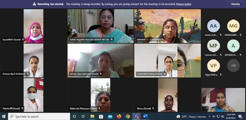 The three days webinar on quantitative nursing research commenced on 18.05.2022 through Microsoft Teams online Platform. This was organized by the first-year students of the Nurse Practitioner in Critical Care (NPCC) Postgraduate Residency Program, Medical-Surgical Nursing department, in collaboration with Pillar 2 (IoE): Exemplary Research and Innovation of Manipal College of Nursing (MCON), MAHE, Manipal.