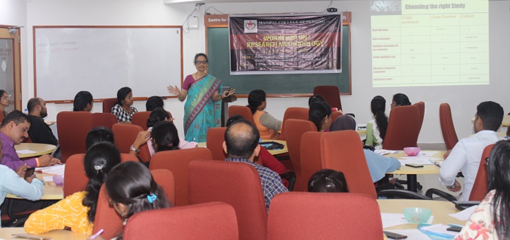 Manipal College of Nursing, MAHE, Manipal, organized a three days workshop on ‘Research Methodology’ from 5th to 7th February 2020 at CCEID, 5th floor, Health Sciences Library building, MAHE, Manipal. This workshop was organized by I Year MSc (Nursing) students in coordination with the Department of Mental Health Nursing. A total of 43 participants had registered from various disciplines like Nursing, Medicine, Pharmacology, Architecture and Allied Health Sciences.