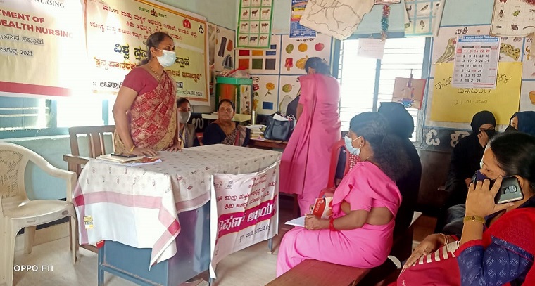 Awareness Program at Kajarugutthu Aanganwadi center: The Department of Community Health Nursing, MCON, in collaboration with the Women and Child Development Department, Udupi, conducted an awareness program on 4 August 2021 at Kajarugutthu Anganwadi center for pregnant women from 11.00 am to 12.00 noon. Mrs Sangeetha M K, Supervisor of Anganwadi Centres, welcomed the gathering and introduced the audience.
