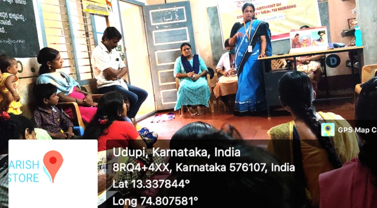 To sensitize on breastfeeding and nutrition issues in the community, the Department of Community Health Nursing, MCON, Manipal, and Women Child Development Department, Udupi jointly conducted an awareness programme on 4th August 2022 at 80 Badagubettu Anganawadi centre between 11.00 am and 12.00 pm. Dr. Ansuya, Assistant Professor, Dept. of Community Health Nursing gave a talk on the importance of breastfeeding, composition of breast milk, various positions, and attachment while feeding. She stressed the importance of giving breastfeeding even while traveling and to avoid giving prelacteal feeding and formulae feeding. Mrs. Akshatha Nayak, Community Health Officer (CHO), Wellness Center, Badagubettu has explained in detail the benefits of breastfeeding, and continued feeding. Mrs. Usha, President of Balavikas Samithi, Mr. Keshav Kotian, Gram Panchayath member emphasized to the audience to update their knowledge by attending these programmes and transform this information to the neighbours and in the community to minimize neonatal death and reduce malnutrition among children. The programme was attended by 20 antenatal and post-natal mothers and the mothers and caretakers of under-five children.  Also, Mrs. Reshma Kotian, Mr. Rakesh Datta, Lecturer, MCON, one Anganwadi worker and one ASHA worker have participated in this programme.