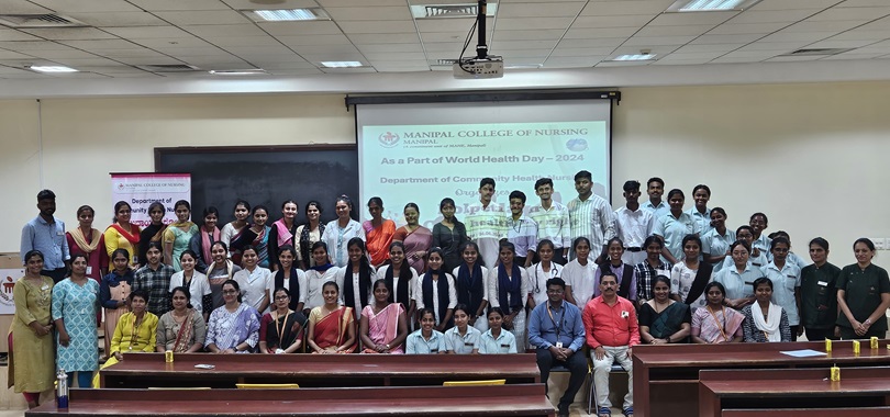 The Department of Community Health Nursing, Manipal College of Nursing, MAHE, Manipal, along with the students of 1st year M Sc Nursing and 4th year BSc Nursing, observed World Health Day 2024 by organizing various activities such as poster competition, roleplay, and guest lecture on the theme “My health, my right.”.
