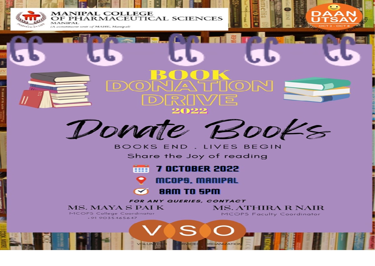 Book Donation Drive was conducted on 7 October 2022. 2 boxes were kept outside MCOPS. The 25 books received were donated to kids of construction workers and educational books were donated to an NGO called Mahamaya Foundation. Saree Donation Drive was conducted on October 8, 2022. 2 boxes were kept outside MCOPS. The collection of 30 sarees were distributed to various housemaids through volunteers.  The third project ‘Clean Utsav Safe Utsav’ was conducted on 8 October 2022 in MCOPS Manipal. The project intended to provide a helping hand to the sanitization workers to keep the college surroundings clean. The motive behind this venture was to instill a thought that there is no discrimination between jobs as big or small. Around 40 volunteers turned up and under the supervision and help of the general duty workers, volunteers cleaned the whole college and experienced the kind of work the workers do every day to safeguard the health of the people. This was followed by High Tea to appreciate their contribution towards maintaining cleanliness and thus safeguarding the health of the people and to acknowledge their importance in society.