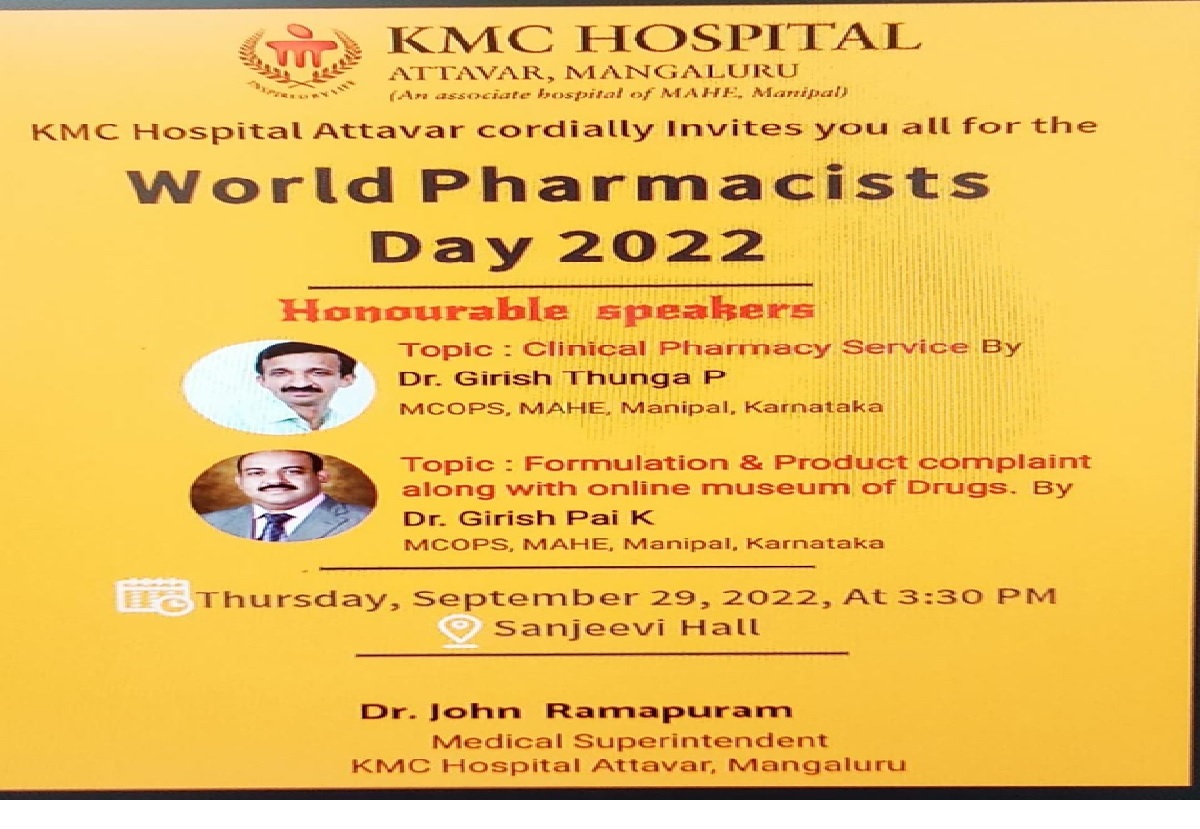 Dr Girish Pai K delivers lecture at KMC Hospital, Mangaluru on the occasion of World Pharmacist Day 2022