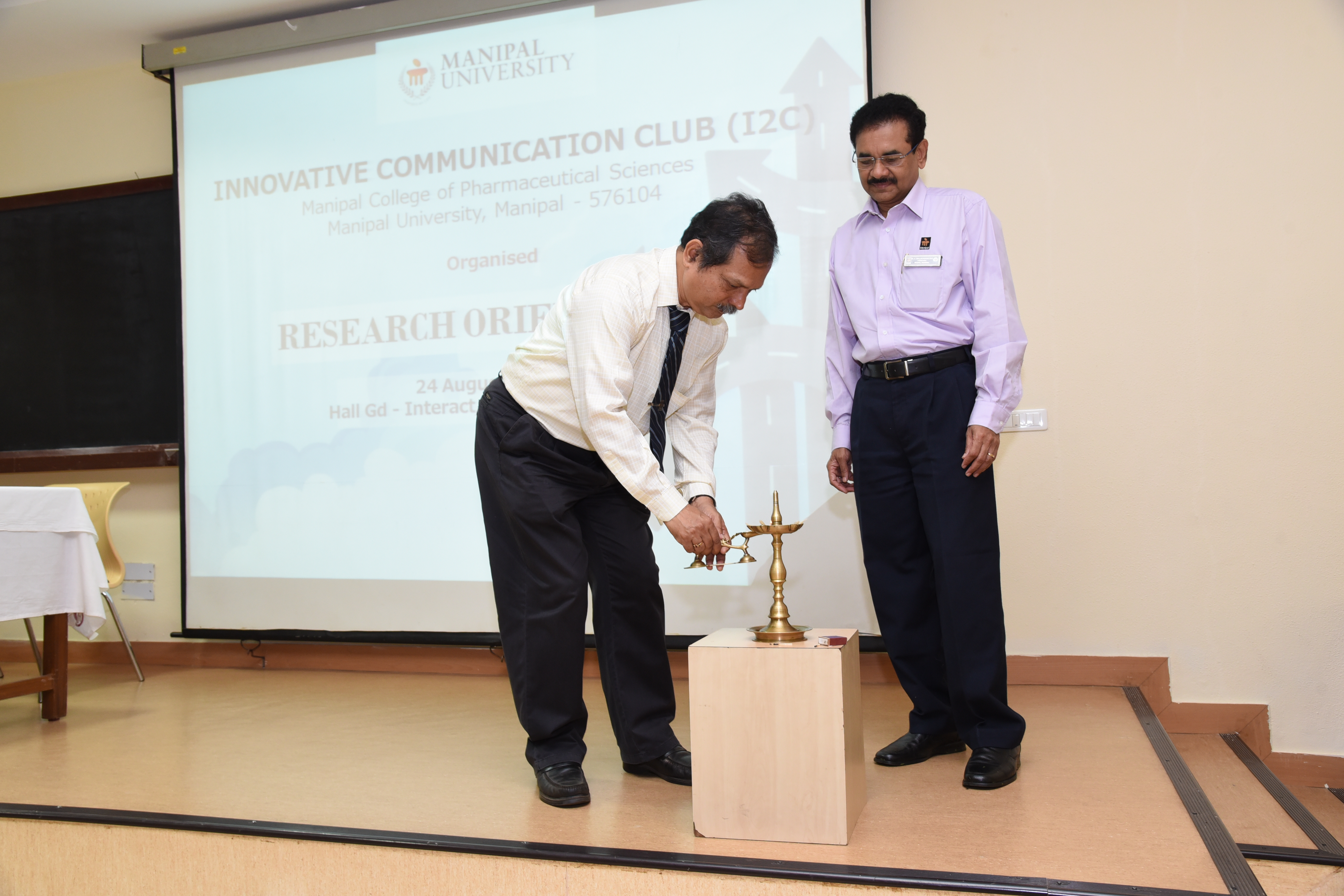A one day program on Research Orientation was organized by Innovative Communication Club (I2C), Manipal College of Pharmaceutical Sciences on 24 August. Dr. Yogendra Nayak, Associate Professor, Department of Pharmacology, was the faculty coordinator for the event. Chief Guest, Dr N Udupa (Research Director - Health Sciences) and Guest of Honour, Dr C Mallikarjuna Rao (Principal, MCOPS) inaugurated the program. Dr Rao exhorted the need for conducting quality research by post-graduate students and faculty members. Similarly, echoed Dr N Udupa when he addressed the gathering on the current aspects and challenges in the field of research. Dr M K Unnikrishnan, Head, Department of Pharmacy Practice, emphasized the need and initial steps in the development of an idea. His words truly reflected the qualities and attitude of an independent researcher. Professor Unnikrishnan explained various facets of plagiarism and its consequences. Techniques for carrying out literature search was highlighted by Dr Yogendra Nayak in his talk. Various databases, journals and publishers were explained by Dr Nayak. He demonstrated the facilities provided by Health Sciences Library, Manipal Academy of Higher Education. Inspite of meticulous work, researchers at times, fail to prove their hypotheses, be it in trials or publishing their research. All these aspects were touched upon by Dr. Gautham Shenoy, Head, Department of Pharm. Chemistry, in his talk on the art of documenting the research findings. The post-lunch session started off with application of the ideology and knowledge given in the morning session. The art of writing a research article in various reputed journals was demonstrated in a lucid way by Dr Yogendra Nayak. He explained the steps involved in manuscript submission, till publication. Referencing styles with available software to aid bibliography was demonstrated by Dr Nayak. The program concluded with Dr. Virendra S. Ligade’s talk. He is a teaching faculty in Department of Pharma. Management. Even a good research idea is poorly understood when presentation skills fail was the take home message from Dr Ligade. Over 150 post-graduate students, research scholars and faculty members attended the research orientation program.