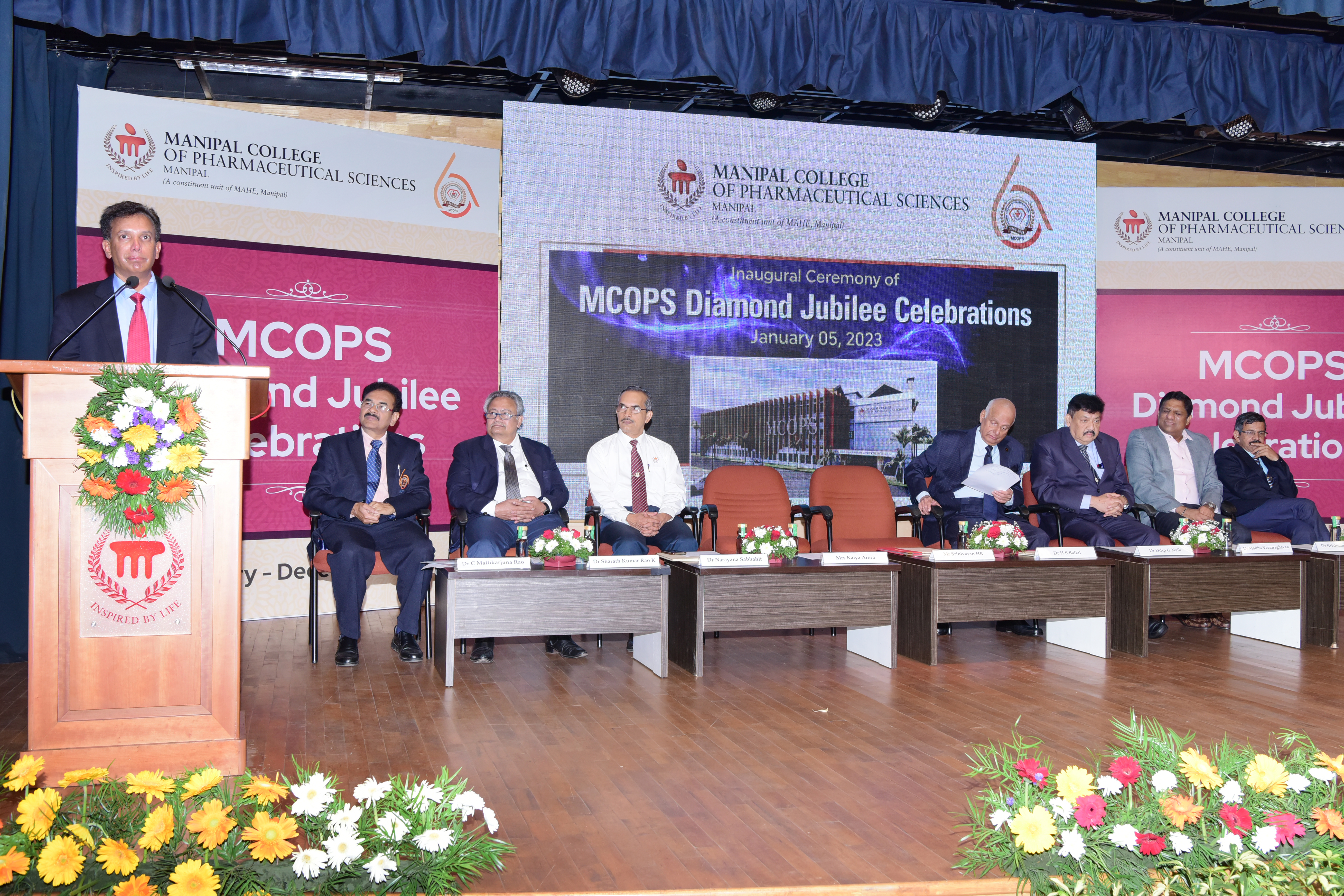 Year 2023 marks a major milestone for Manipal College of Pharmaceutical Sciences (MCOPS) as it celebrates its Diamond Jubilee. Year-long celebration flagged off on Thursday, 5 January 2023 at Dr TMA Pai Hall, Manipal. Diamond Jubilee Celebration was inaugurated by Mr HR Srinivasan, Chief Executive Officer, Navitas Life Sciences. The function was presided by Dr HS Ballal, Pro Chancellor, MAHE.