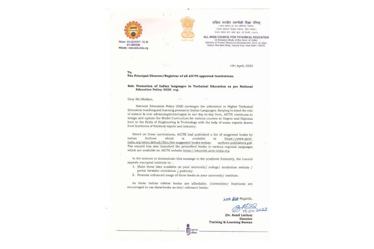 Promotion of Indian languages in Technical Education as per National Education Policy 2020