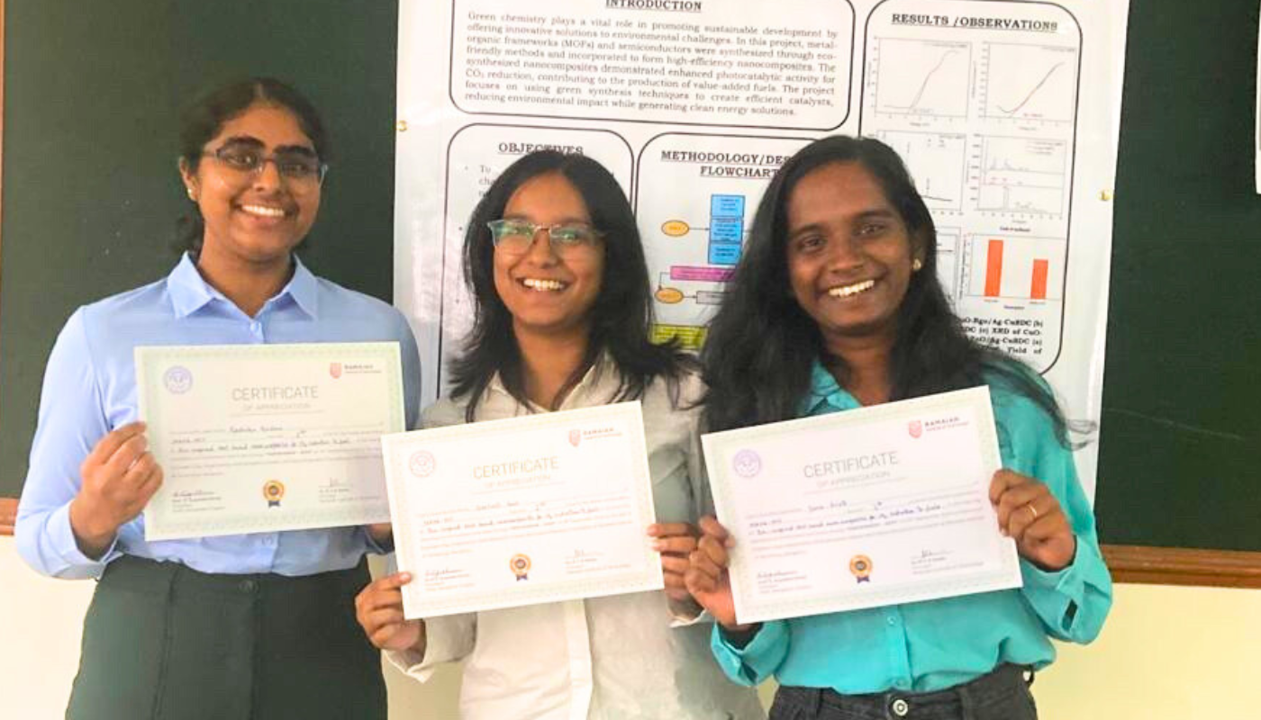 Their award-winning project, titled “Bioinspired Metal Organic Framework-Based Nanocomposites for Carbon Dioxide Reduction to Solar Fuels,” was praised for its innovative approach to converting carbon dioxide into solar fuels, a sustainable solution that addresses pressing environmental challenges. The project was developed at the VGST Centre of Excellence, funded by the Vision Group on Science and Technology (VGST), Government of Karnataka.