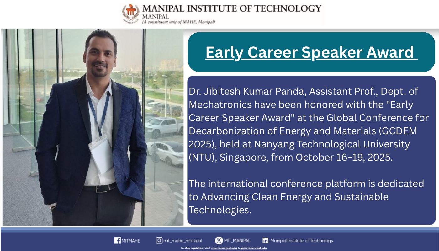 Ganesh Nayak from the Department of Instrumentation & Control Engineering has been awarded the prestigious Ecology Project International (EPI) Alumni Leadership Award for his outstanding work with the Centre for Outdoor Studies (COS). As part of this recognition, he has received a grant of $800, which will support an ecological survey of the MIT Manipal campus, documenting birds, reptiles, amphibians, and butterflies.