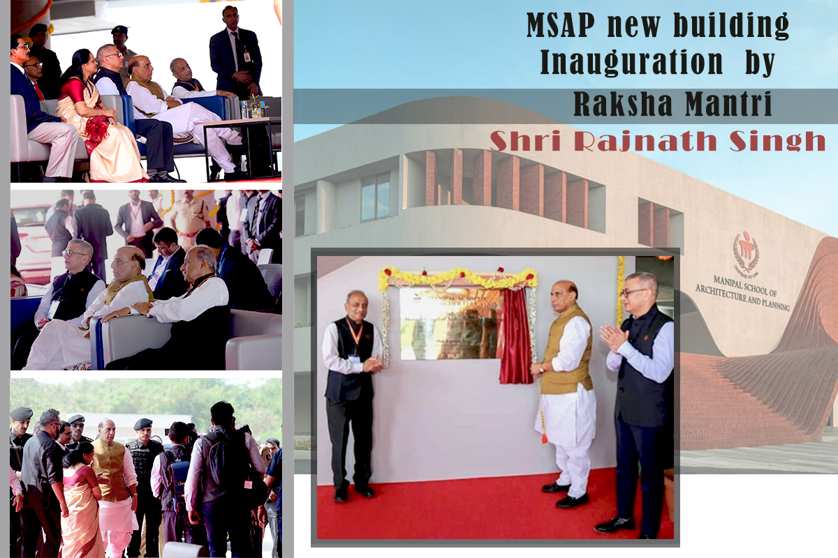 The New building for Manipal School of Architecture and Planning is being inaugurated by Shri Rajnath Singh,Hon. Defence Minister.The 1,45,00 sqft builtup area structure is built on a heavy countoured land of 3.9 acres are planned approx.1200 students and Faculties.With state of modern technology and state-of-the-art facilities,the new building is totally a GRIHA compliant energy efficient campus.