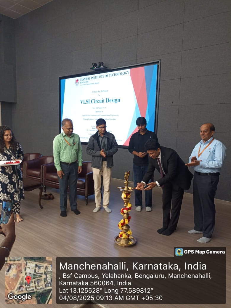 The Department of Electronics & Communication Engineering − VLSI Group at MIT Bengaluru organized a three-day workshop on “VLSI Circuit Design” from 4th to 6th August 2025. The event witnessed enthusiastic participation from 50 students across the BTech ECE, ECM, and VLSI programs, who gained valuable insights into industry-relevant topics.