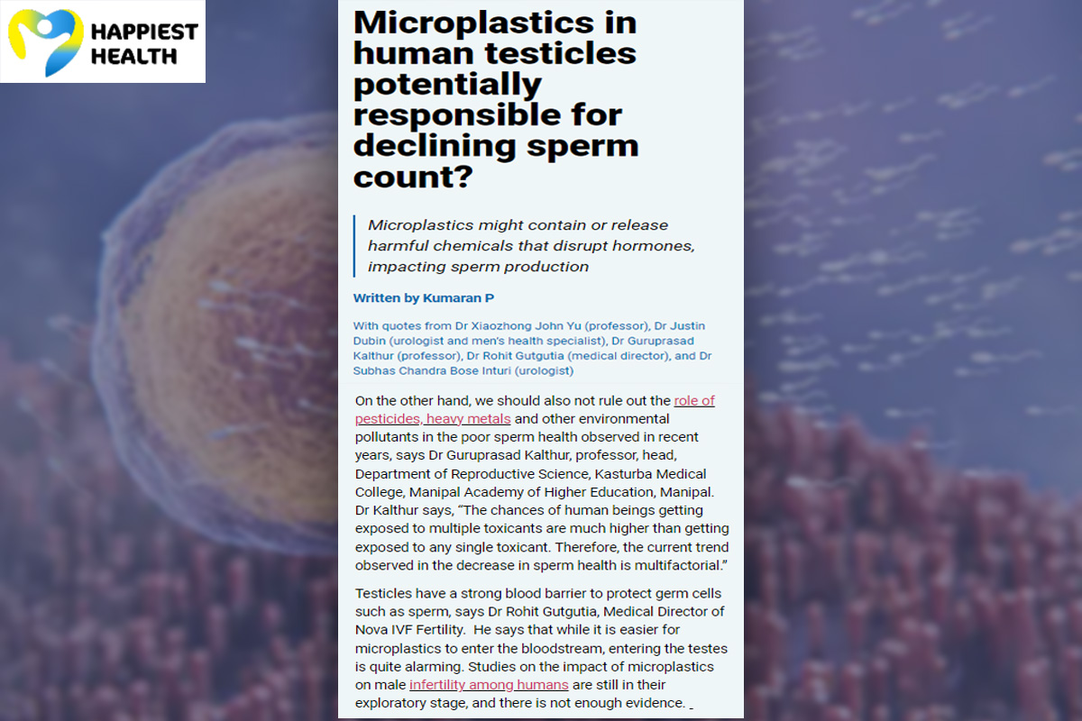 Dr Guruprasad underscores the potential effects of microplastics on sperm quality, noting that the pervasive nature of these pollutants contributes to a growing concern. He emphasises that humans are more likely to be exposed to a combination of multiple toxicants rather than a single one.