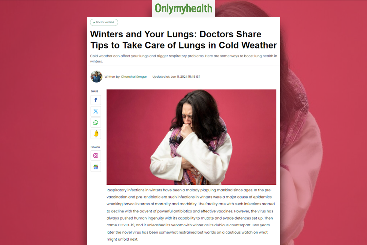 The author's article, Winters and Your Lungs: Doctors Share Tips to Take Care of Lungs in Cold Weather, by Dr Unnikrishnan B, Dean & Professor, Department of Community Medicine, Kasturba Medical College (KMC), Mangalore & Dr Vishak Acharya K, Professor, Department of Respiratory Medicine, Kasturba Medical College (KMC), Mangalore.