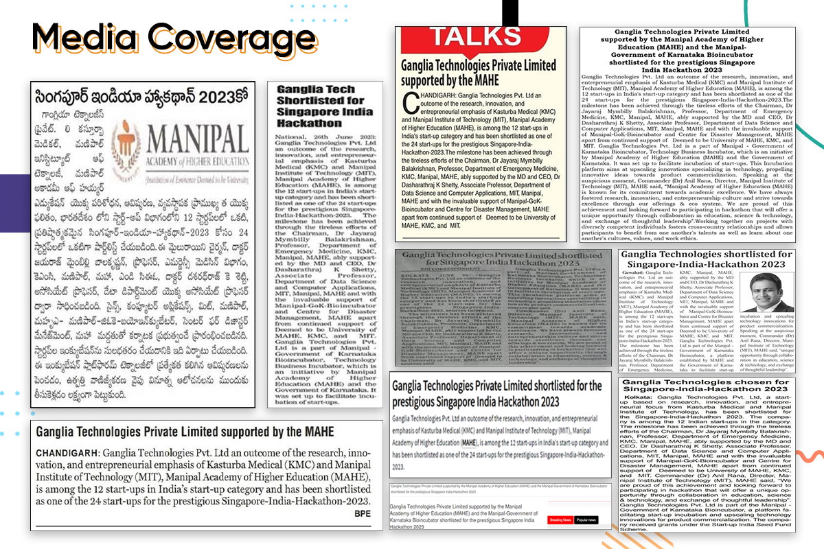 Ganglia Technologies Private Ltd Supported by MAHE & The Manipal-GoK Bioincubator Shortlisted for The Prestigious Singapore India Hackathon 2023