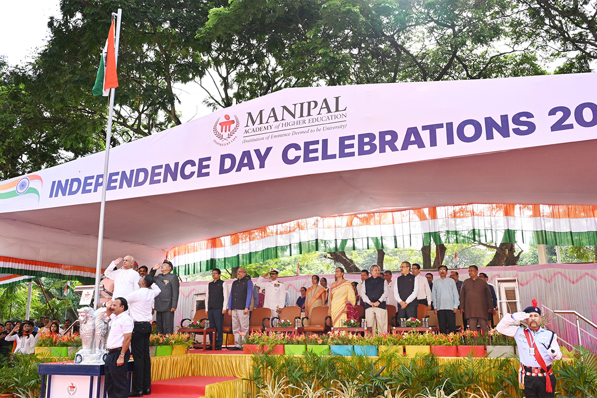 Manipal, 15th August 2023: This was the message delivered by the Honourable Vice-Chancellor of Manipal Academy of Higher Education (MAHE), Manipal Lt. Gen. (Dr) MD Venkatesh, on the occasion of 77th Independence Day celebrations. Organised with the usual fervour, festivities, and fantastic parade of the constituent units of the university, the event was hosted by the Manipal School of Life Sciences (MSLS), MAHE, at the Department of Basic Medical Sciences premises at Manipal.