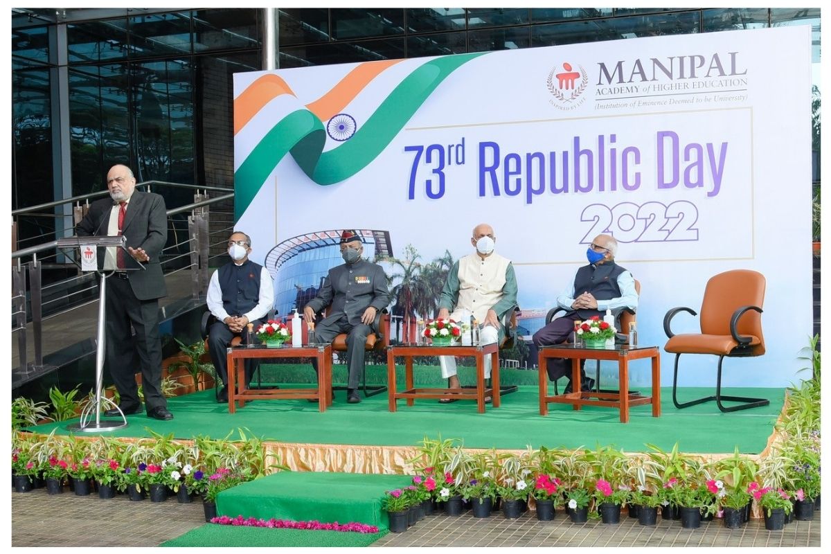 Manipal, 26th January 2022: Manipal Academy of Higher Education celebrated 73rd Republic Day, 2022 in a ceremony befitting the occasion in its campus with enthusiasm and vigour even with the restrictions due to the pandemic.
