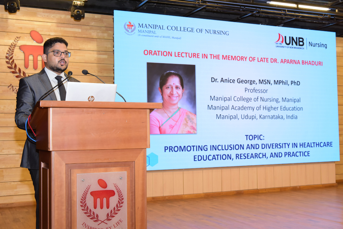 A significant highlight of the conference was the Oration Lecture delivered in memory of Late Dr. Aparna Bhaduri by Dr. Anice George, Professor and Head, Research and Collaboration, and Former Dean, MCON, MAHE. The lecture, titled "Promoting Diversity and Inclusion in Healthcare Education, Research, and Practice," was moderated by Dr. Vishnu Renjith, Lecturer and Program Director, School of Nursing & Midwifery, Royal College of Surgeons in Ireland.
