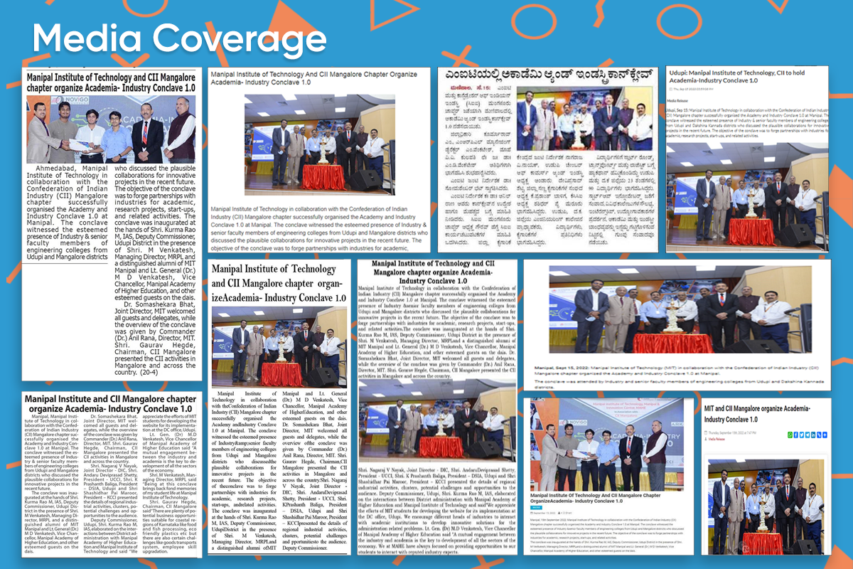 Manipal Institute of Technology in collaboration with the Confederation of Indian Industry (CII) Mangalore chapter successfully organised the Academy and Industry Conclave 1.0 at Manipal. The conclave witnessed the esteemed presence of Industry & senior faculty members of engineering colleges from the Udupi and Mangalore districts who discussed the plausible collaborations for innovative projects in the recent future. The objective of the conclave was to forge partnerships with industries for academic, research projects, start-ups, and related activities.