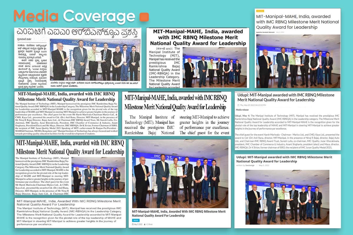 Cdr (Dr) Anil Rana, Director, MIT expressed his happiness and said “It was a great honour to receive the prestigious IMC Ramkrishna Bajaj National Quality Award (IMC-RBNQA) in the Leadership Category, on behalf of MIT-Manipal, in the Leadership Category Mumbai on 30th April 2022. MIT-Manipal has been bestowed with this honour for its excellence in academic and research quality, focusing on overall student development, concern for the environment and safety, community service, and human resource management. The unique model that ensures experiential learning by the students and the whole-hearted support for their innovation and entrepreneurial pursuits is something that sets apart MIT-Manipal from all others.