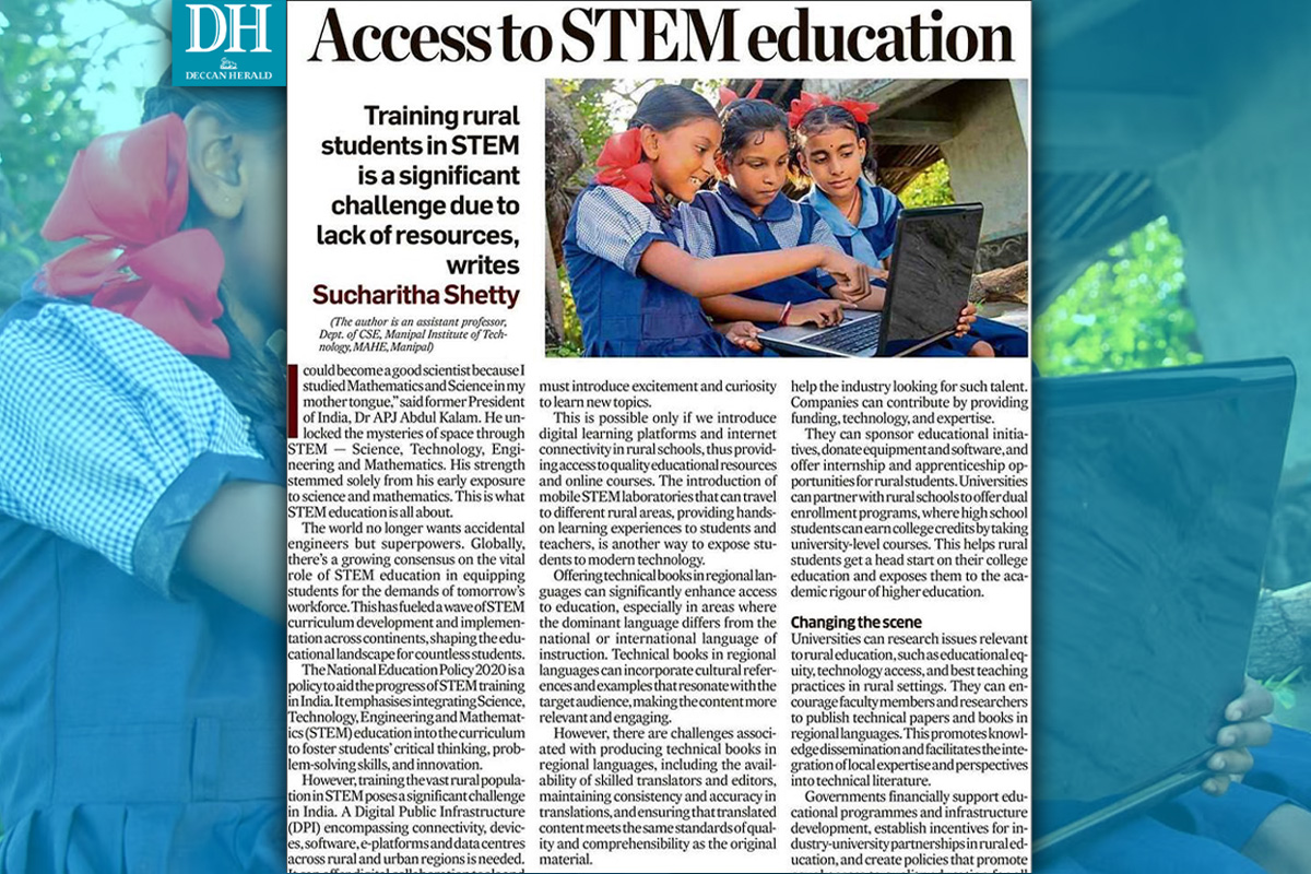 – The author's article, "Access to STEM education", by Dr Sucharitha Shetty, Asst. Professor-Senior, Dept. Of CSE, Manipal Institute of Technology (MIT), Manipal.