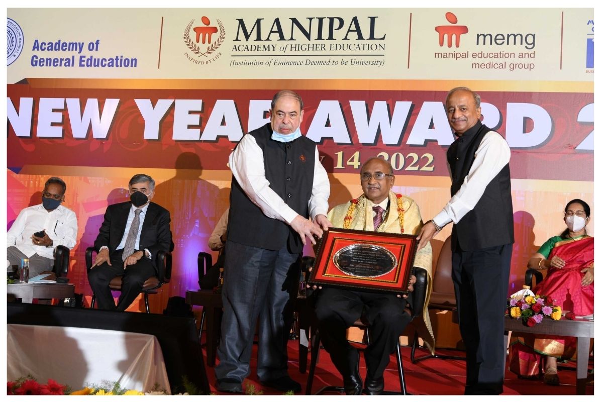 Manipal, January 14, 2022: Academy of General Education (AGE), Manipal Academy of Higher Education (MAHE), MEMG and Manipal Media Network Ltd conducted “New Year Awards 2022” to honour eminent personalities of different fields for their distinguished services and immense contributions to the society. The awards were conferred on four individuals for their contributions in the fields of medical education, healthcare, business administration, arts and culture. The welcome address for the ceremony was made by Dr H S Ballal - Pro Chancellor & President, Academy of General Education, MAHE. Lt Gen (Dr) M D Venkatesh, Vice Chancellor MAHE gave the felicitation address