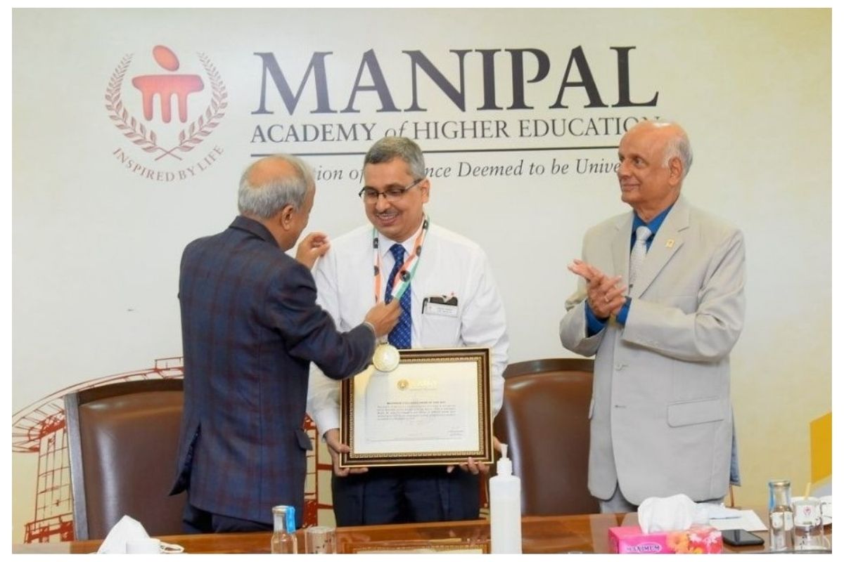 Manipal, 17th January 2022: Mr. Suresh Shenoy, Chief Manager – HR, Kasturba Hospital, Manipal Academy of Higher Education, Manipal has been featured in the India Book of Records 2022 for maximum number of Collage Art Works in a day. He has completed 10 unique collage art works within 6 hours and 30 minutes. MAHE Manipal honoured him on January 14, 2022 in the presence of Dr. H.S Ballal, Pro Chancellor, Lt. Gen. M.D. Venkatesh, Vice Chancellor, Dr. H. Vinod Bhat, Executive Vice President and former VC, Mr. Nishith Mohanty, Group President – HR & Academia, MEMG Bengaluru, Pro Vice Chancellors, Registrar, Senior Leadership of Kasturba Hospital and other Officials of MAHE.