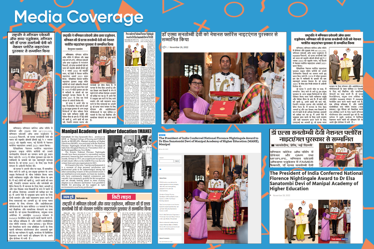 Manipal, 25th November 2022: Dr Elsa Sanatombi Devi, professor & QMR at Manipal College of Nursing and FAIMER faculty at MFIIPLIPE, Manipal Academy of Higher Education (MAHE), was presented with the National Florence Nightingale Award 2021 by the President of India Smt. Droupadi Murmu on 7th November 2022 at the Rashtrapati Bhavan, New Delhi.