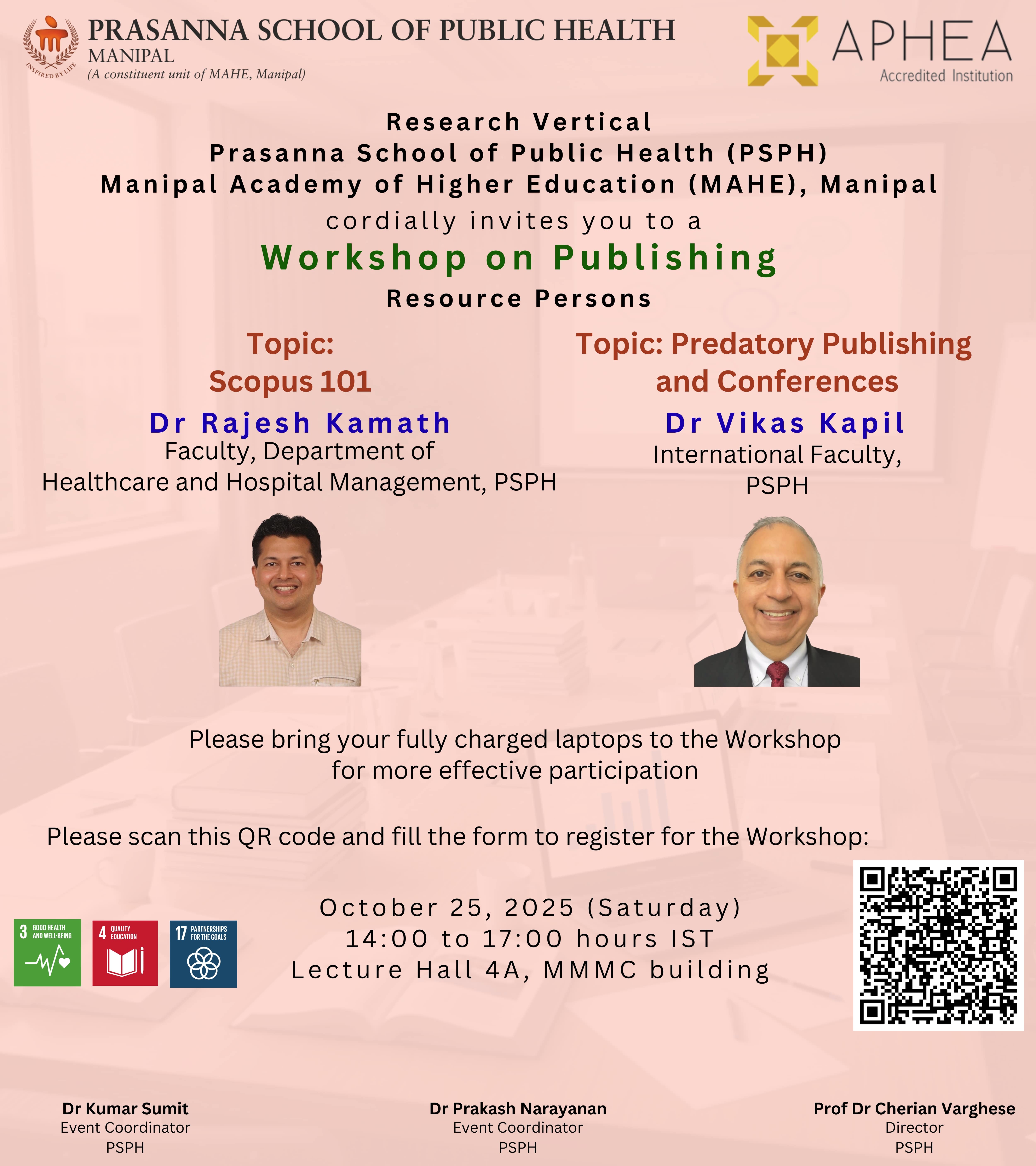 Prasanna School of Public Health seeks to facilitate and pursue new research initiatives that cut across the traditional disciplinary lines enhancing the research capacity through academic and outreach initiatives. PSPH has created inter-disciplinary research units to build research appetite among its faculty and students and to develop networks with researchers, research centers building, industry and community.