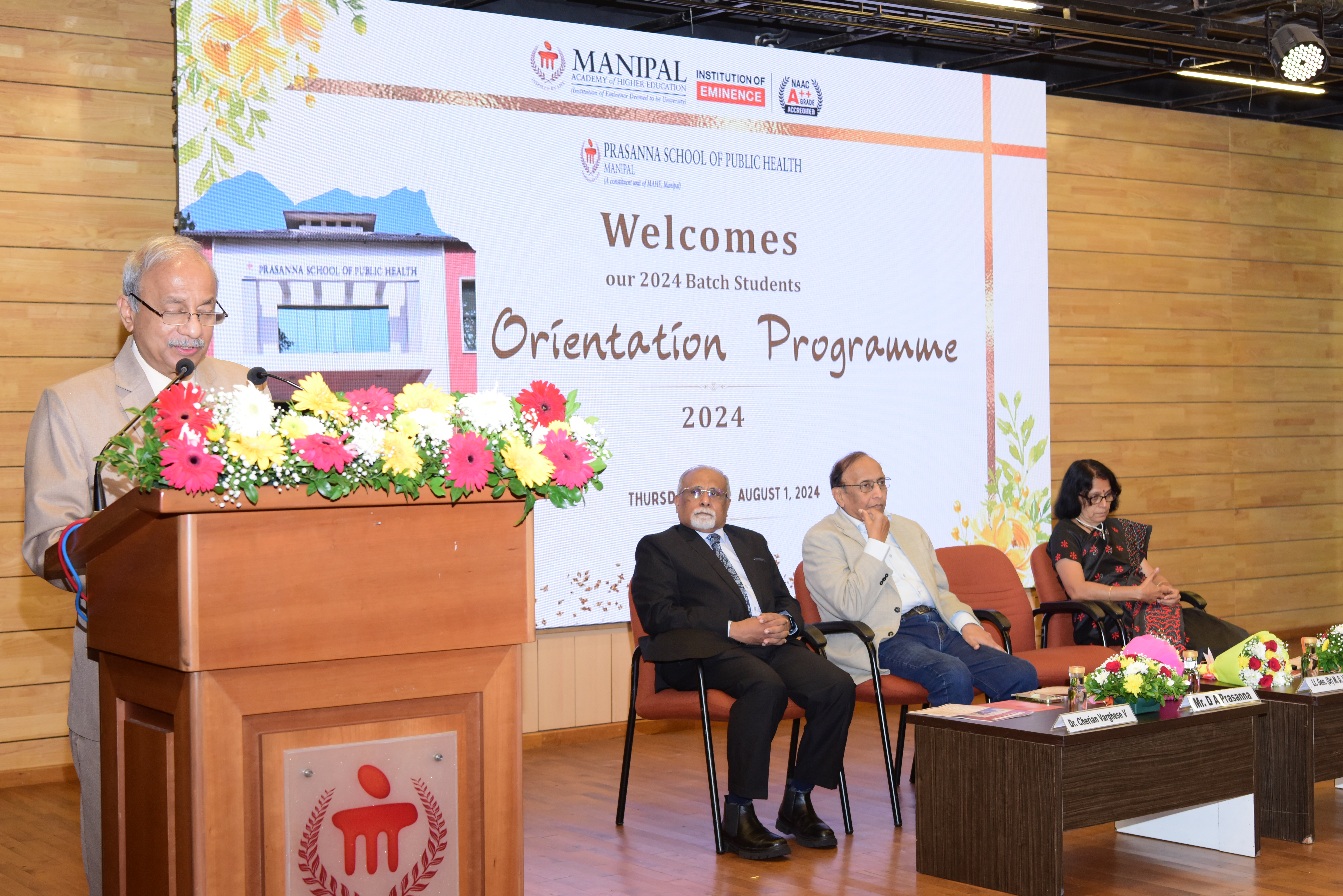 Manipal, August 1, 2024 – Prasanna School of Public Health (PSPH), a constituent unit of Manipal Academy of Higher Education (MAHE), held its Orientation Day 2024 at the TMA Pai Hall, KMC Administration Block, to warmly welcome the fresh batch – 2024, students embarking on their journey in public health education. The event saw an inspiring lineup of speakers and a structured programme aimed at setting a positive tone for the new academic year.