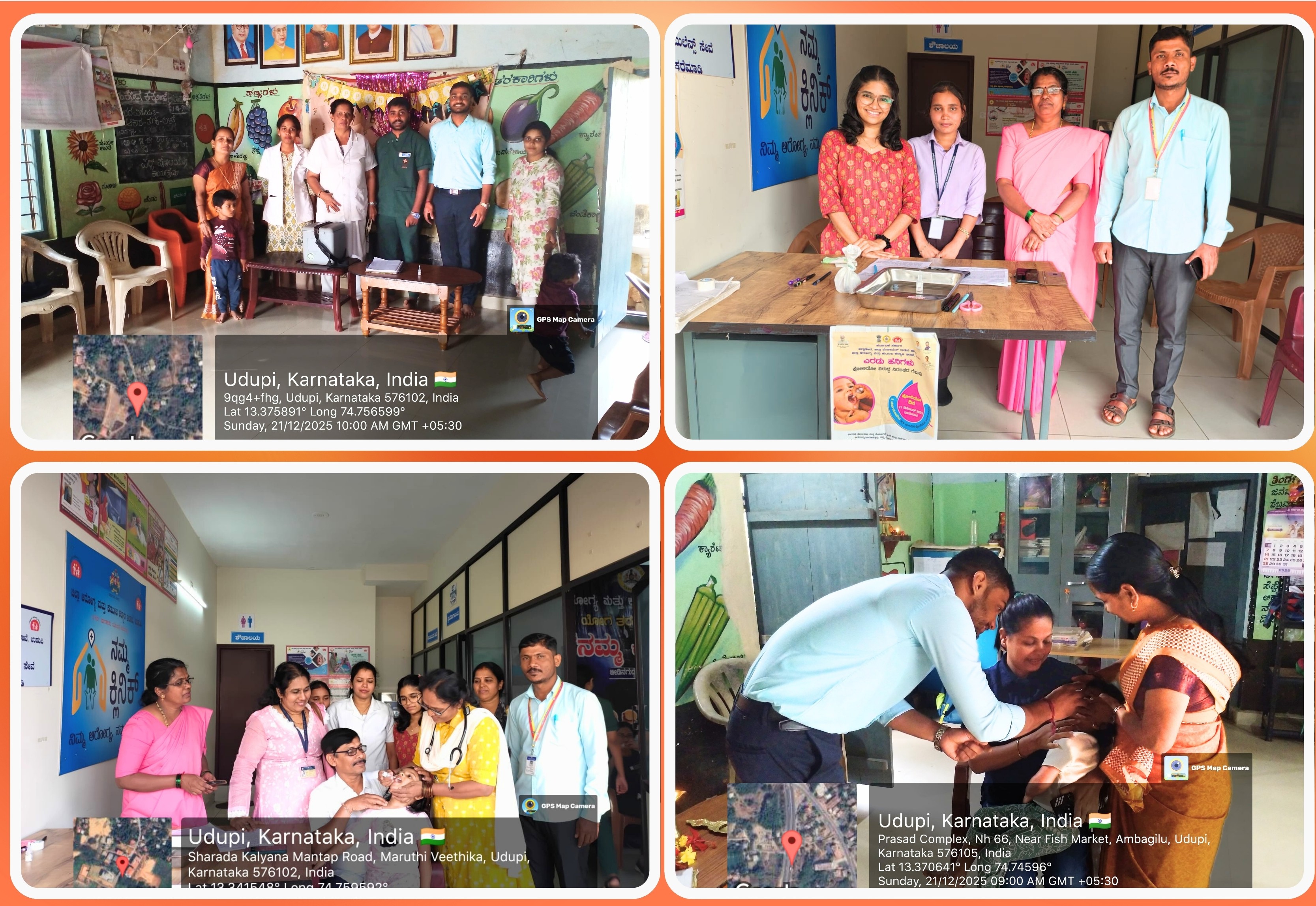 On account of the National Pulse Polio Programme, students of PSPH volunteered to carry out vaccination of children under 5 years of age, which was done through collaboration between KMC, Manipal, UPHC, Manipal and UPHC, Udupi. They were posted in booths in Tigercircle, bus stands, railway station, anganwadis, PHCs etc in and around Manipal and Udupi from 21st to 24th December 2025. They went on house visits paired with ASHAs and Anganwadi teachers to ensure maximum vaccination coverage.