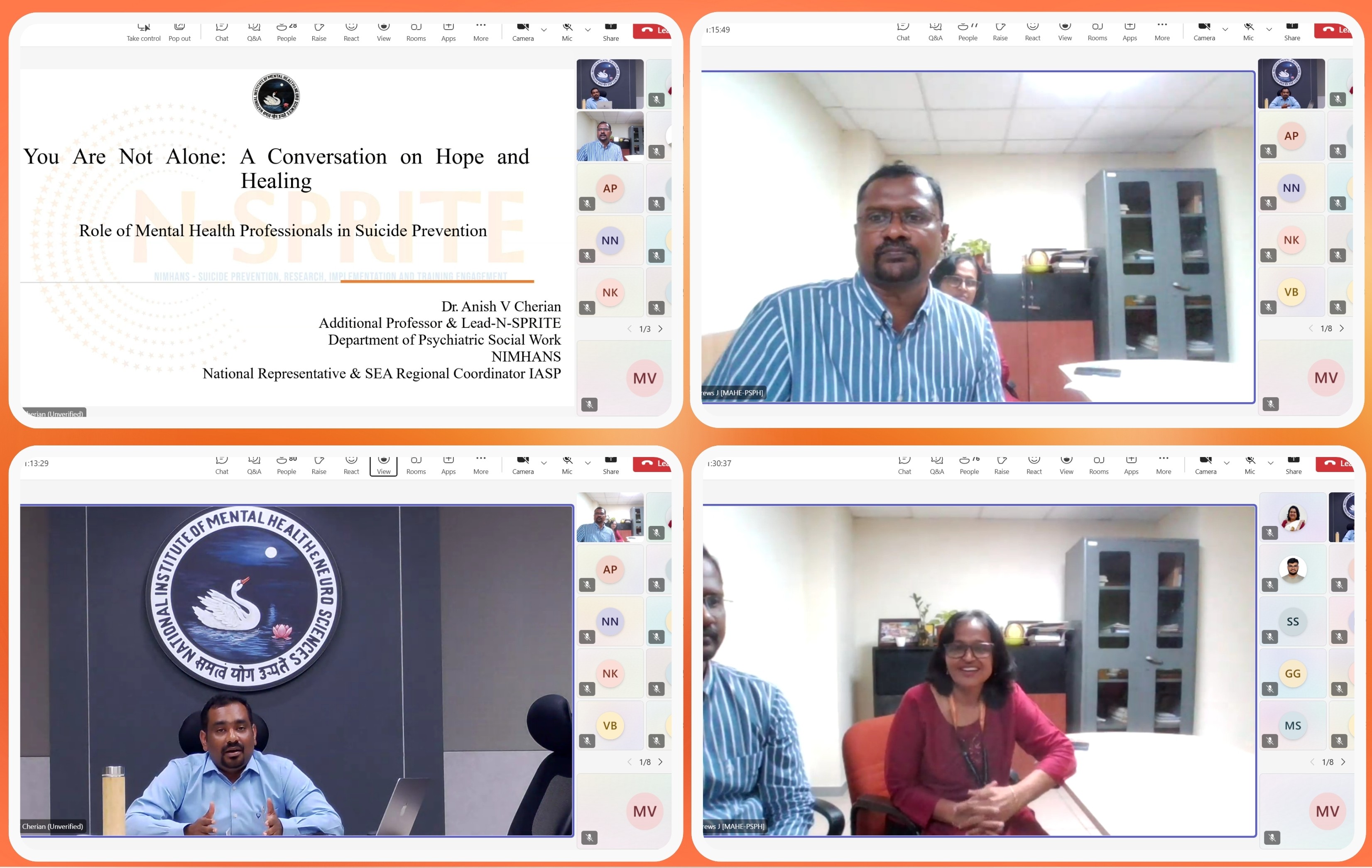 The Department of Social and Health Innovation (DSHI), Prasanna School of Public Health (PSPH), Manipal Academy of Higher Education (MAHE), Manipal organised a meaningful and inspiring webinar: “You Are Not Alone: A Conversation on Hope and Healing” on Wednesday, August 20, 2025 (17:00 – 18:00 hours IST) virtually through Microsoft Teams.