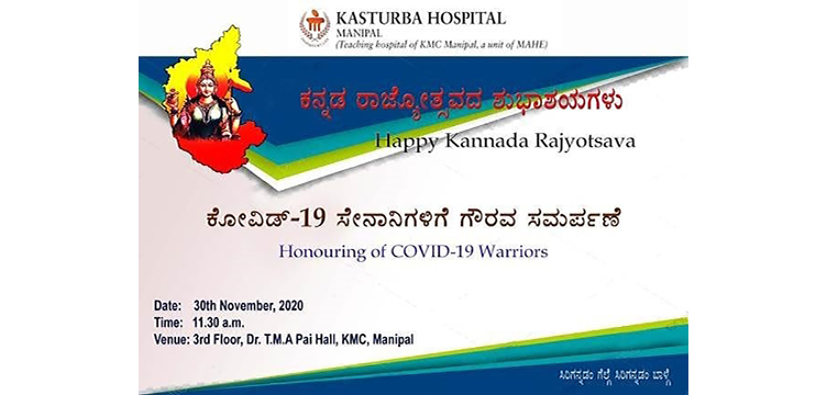Ms Brayal Dsouza (Faculty, MHA Program) was honoured for her dedicated services and contribution during the COVID-19 Pandemic (for saving lives and making a difference in the community) at a ceremony organized by Kasturba Hospital, Manipal on November 30, 2020.